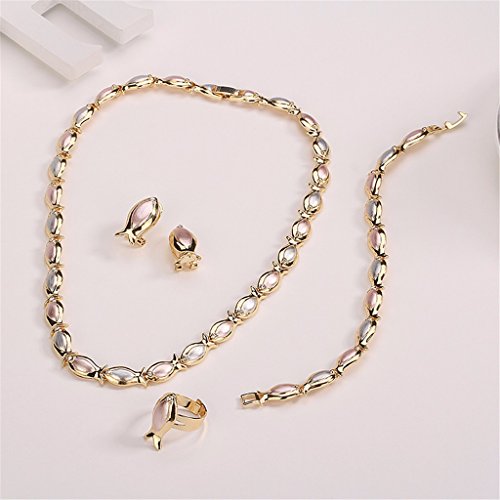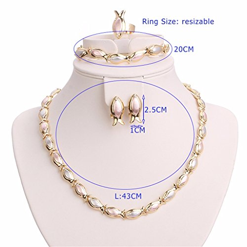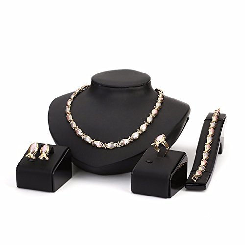 - Feature : Specifications: 1.Necklace Chain Length:16.9 inches; 2.Bracelet length: 8 inches; 3.Earrings length:1 inches; 4.Ring size: open / The surface of the jewelry is gold plated and the material is alloy. It will never fade and is not allergy for your skin. The big stone is artificial zircon and small stone is crystal. / This jewelry set is shinning, beautiful, luxury looking, so it is suitable many occasions, such as dinner party, birthday party and wedding. This set is an ideal gift for your girlfriend, fiancée, wife, mother or friend. It is also a good choice for engagement or wedding jewelry. / Including 1 necklace + 1 bangle+1 ring + a pair of earrings in the jewelry set; / Item will be shipped from CA, USA in one business day. The delivery time of priority shipping is 1-3 business days and the standard shipping is 2-6 business days.