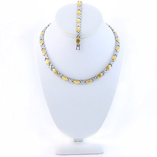 Hugs and Kisses Stainless Steel Stampato Necklace and Bracelet Set Two Tone Heart Style 18''