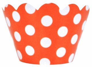 Just Artifacts Decorative Cupcake Paper Wrapper Muffin Holder - (40pc) Color: Orange w/ White Polka Dots - Decorations for Birthday Parties, Baby Showers, Weddings and Life Celebrations!