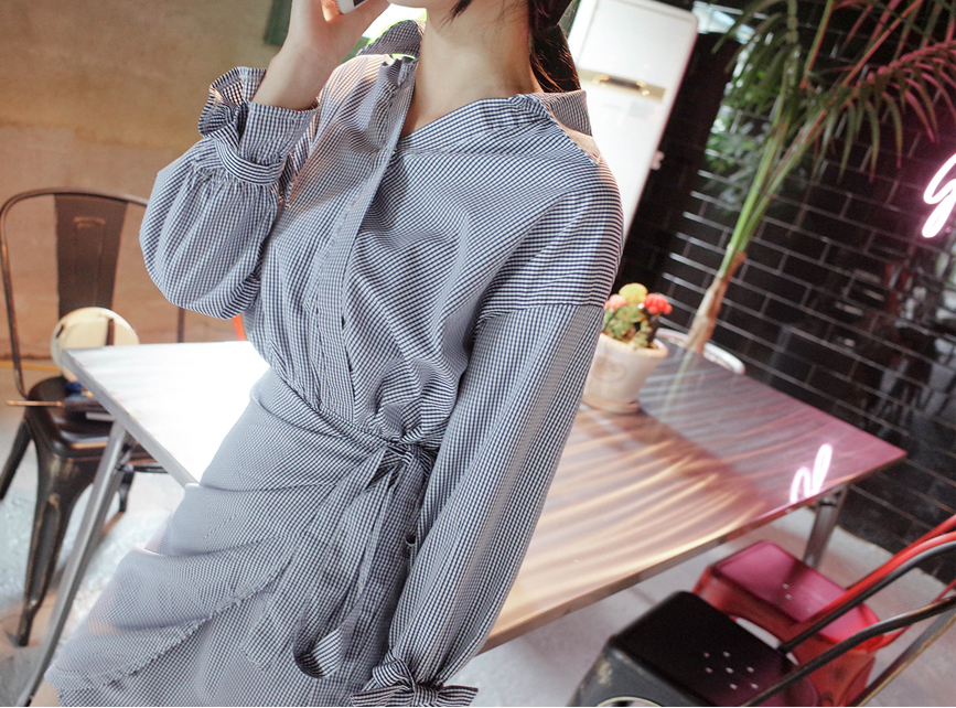 소매라인의 밑단은 리본스트랩으로 러블리하게