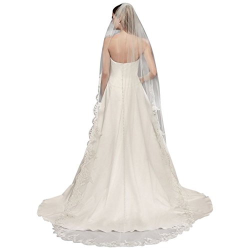 Studio : David's Bridal Publisher : David's Bridal Binding : Apparel Product Description This cathedral length veil evokes a sunflower meadow, with round blossoms, centered by rhinestone gems, embroidered along its scalloped edge. Nylon 108"L Steam and hang USA 0