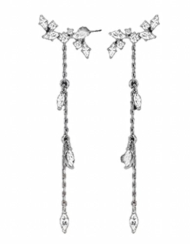 -. Feature : ラインストーンのついた揺れるチェーンが優雅なピアス。 / チェーンはキャッチについているので、立体的なデザインにみえます。 / 華奢な女性らしいデザインながら、フォーマルな装いにも似合います。 / 大きさ:ピアス15mm、チェーン35mm / 材質:合金