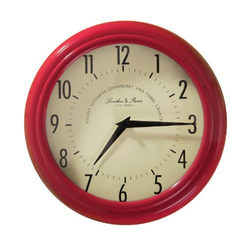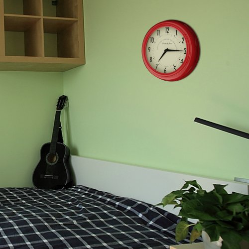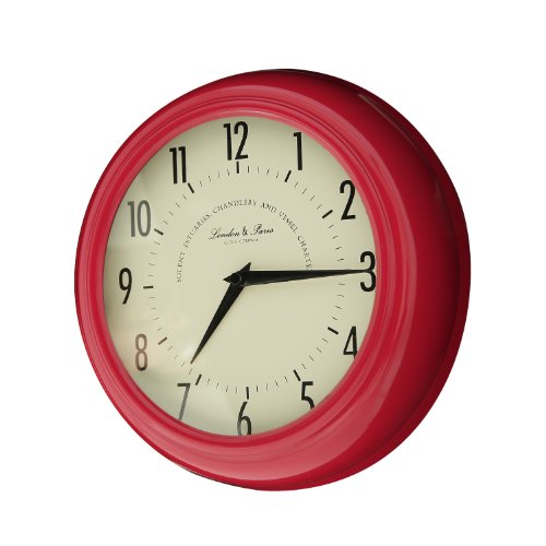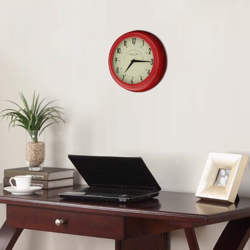 -. Title : Adeco Red Iron Vintage-Inspired Round Wall Hanging Clock, Large Numbers Home Decor