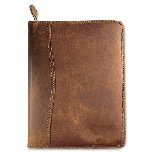 -. Title : Aviator Cowhide Leather Zippered Organizer Starter Set, 5-1/2 x 8-1/2, Dark Tan