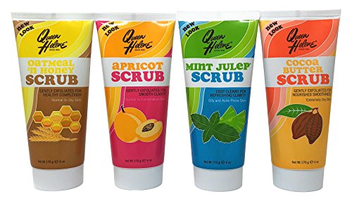 - Bundle includes: Queen Helene Facial Scrub - Oatmeal ‘n Honey (6 oz), Apricot (6 oz), Mint Julep (6 oz), Cocoa Butter (6 oz)