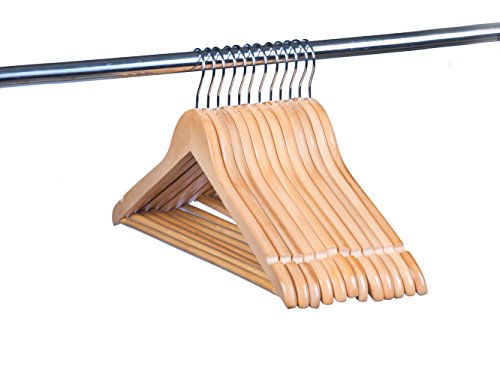 -. Title : Amber Home Gugertree Solid Wooden Hangers Wood Suit Coat Hangers, Natural Color Smooth Finished with Non-slip Bar,Chrome hook (20 Pack)