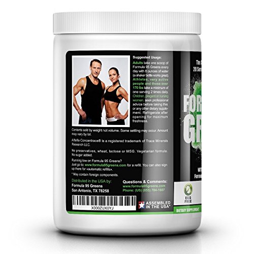 MADE IN THE U.S.A. for your safety. This exclusive blend includes Spirulina; Chlorella; Kelp; Elderberries; Alfalfa Trace Mineral; Broccoli Powder; Apple Fiber Pectin; and 53 more whole food ingredients.