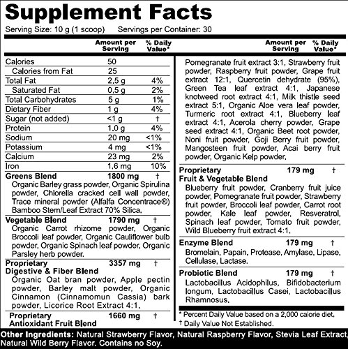 POWERFUL COMBINATION of whole-food fruits, vegetables, superfoods, probiotics and enzymes contain no egg or dairy; no nuts; and no GMO. Overcome chronic fatigue and improve mental focus naturally.