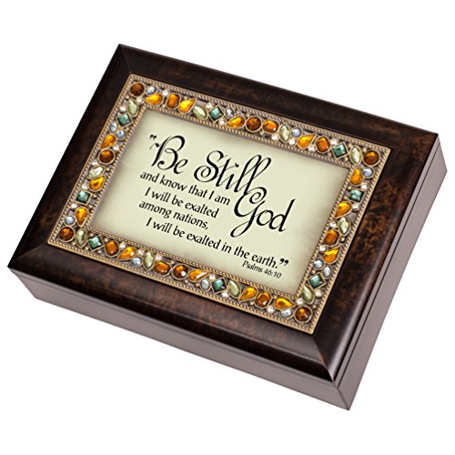 "Be Still and Know that I am God" Religious Psalm 46:10 Italian Style Burlwood Finish Decorative Jewel Lid Musical Music Jewelry Box - Plays On Eagle's Wings