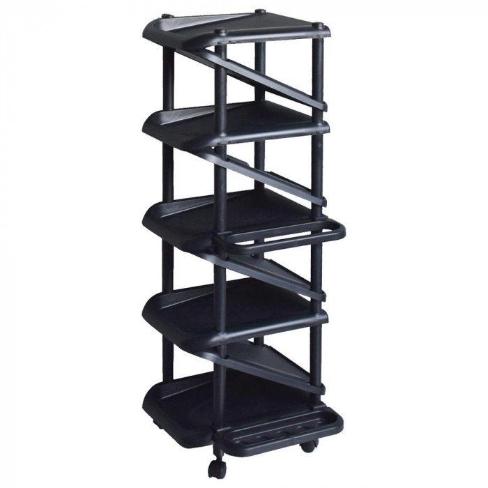 狭い所にも置きやすいスリムなシューズラック。互い違いになった段に最大9足の靴を収納できます。傘も一緒に収納できる傘立て付き。