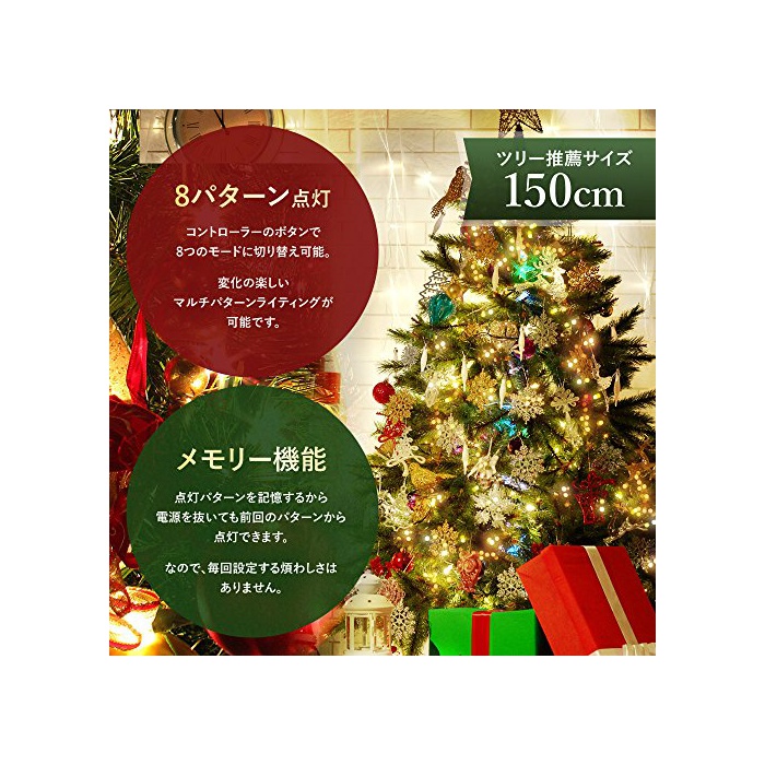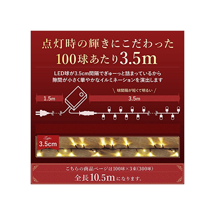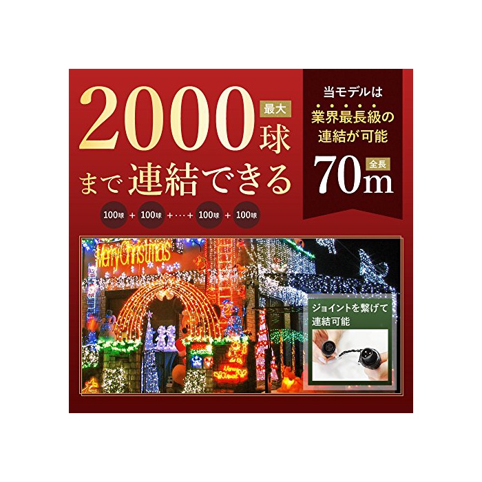 원본상품명: Sea the Stars イルミネション LED リモコン付き 防雨 防滴 【 連結可能 全長 約70m 2000球まで 】 (全長 約10.5m(300球), レッド×グリン)