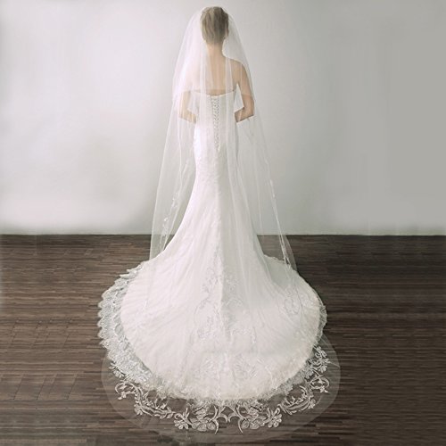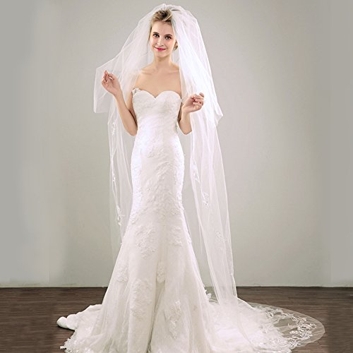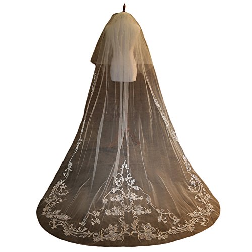 (Fishlove)/Accessories/Scarves/DIRECT FROM USA/Fishlove Long Cathedral Length Soft Tulle Mantilla Veils For Brides With Beads V40