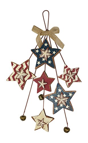 Patriotic Red White and Blue Wood and Iron Hanging Star Spray with Jingle Bells