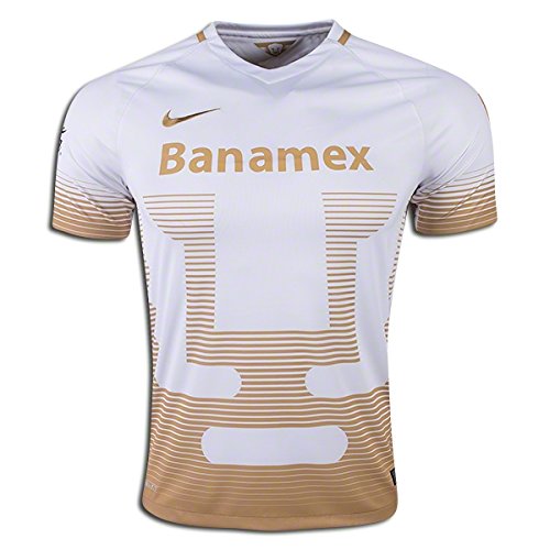 -. Title : 2015-2016 UNAM Pumas Away Replica Soccer Jersey (White/Gold) (M)