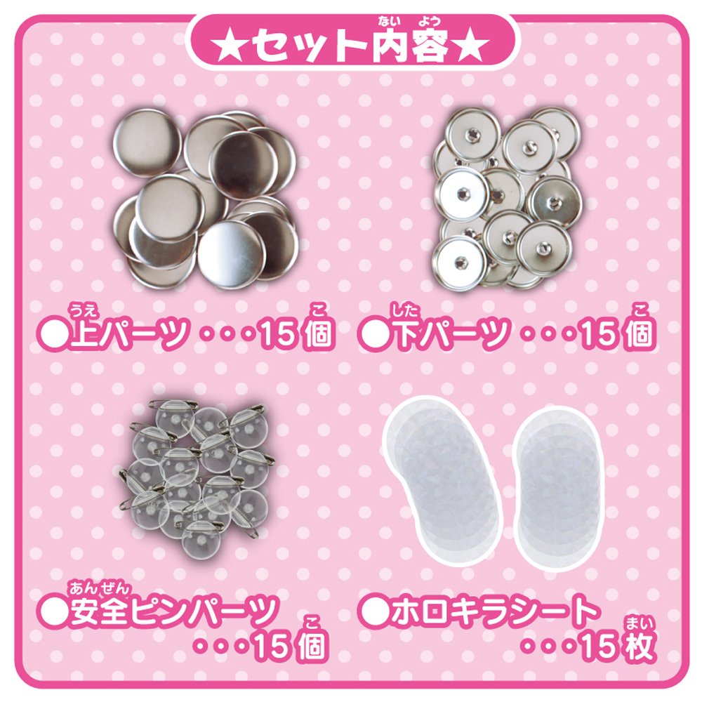 [Contents of set] Top part: 15 Bottom parts: 15 Safety pin parts: 15 Holographic sheet: 15