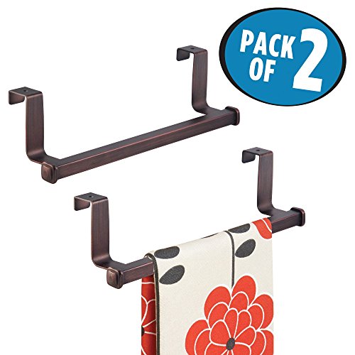 mDesign Over-the-Cabinet Towel Bar for Kitchens or Bathrooms - Pack of 2, Bronze