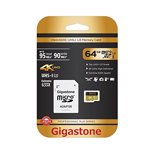 Gigastone 64GB Pro+ Micro SD Card U3 MLC 4K up to 95/90 MB/s R/W Memory + SD Card Adapter [Professional MicroSD for UHD Video Recording DSLR GoPro Camera Drone Samsung Galaxy Android Phone Tablet PC]