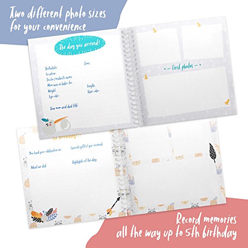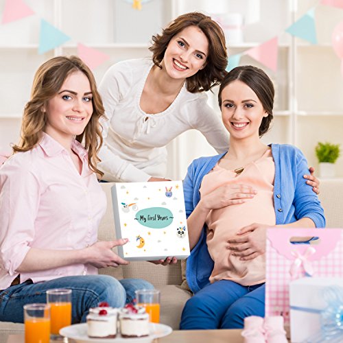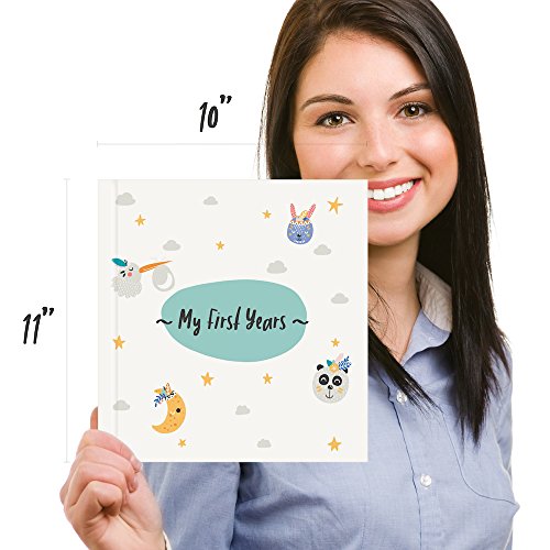 - 48 page Baby Memory Book 11 x10 # 12 pages of monthly progress # Holiday pages (X'mas, New Year, Easter, Mother's/Father's Day, Halloween, Thanksgiving) # Pages that records baby's many firsts milestones # Birthday celebrations, adventures, travel play # Pages to include best memories for the year photos - 12 Milestone stickers - Baby Safe Ink Pad - Keepsake Envelope to put hospital bracelet, fallen teeth, baby hair etc - Keep sake box AMAZONS ONLY Journal Crafted by Moms for Moms