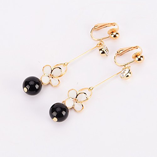 -. Feature : ワンタッチで装着簡単!耳に挟むだけ! / 黒ストーンイヤリング / 【サイズ】 6.0cm
