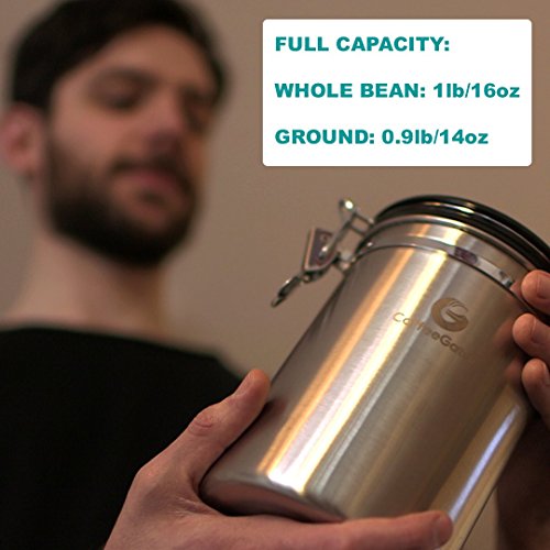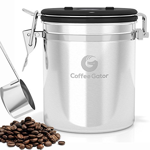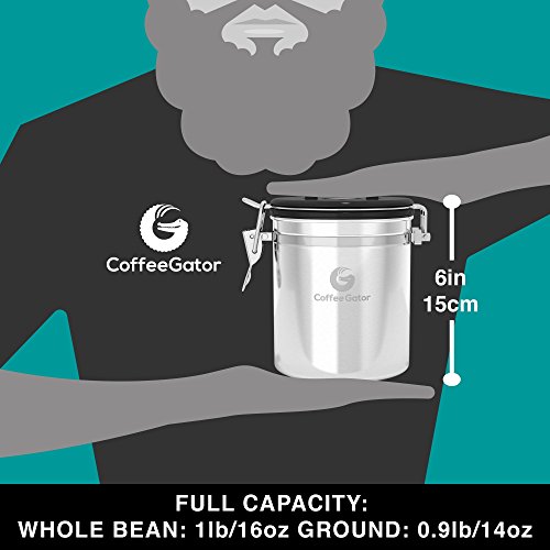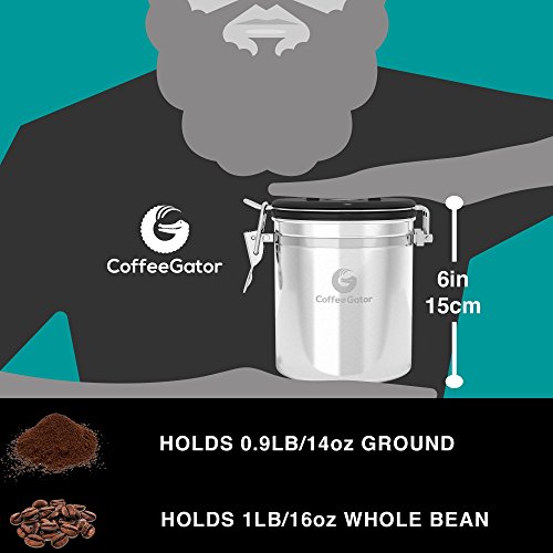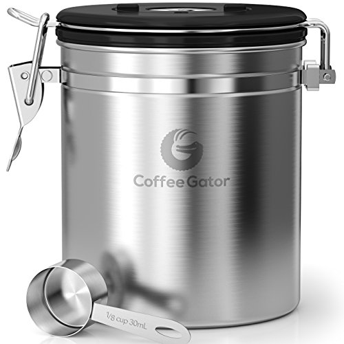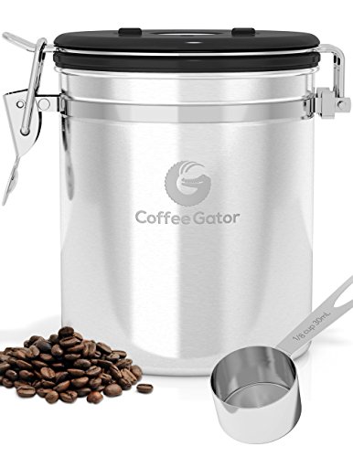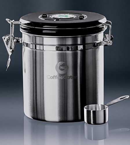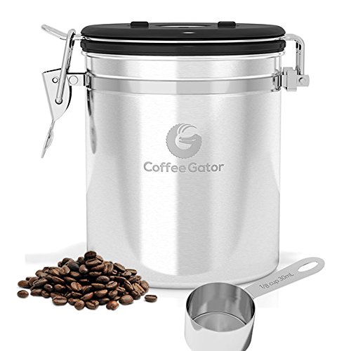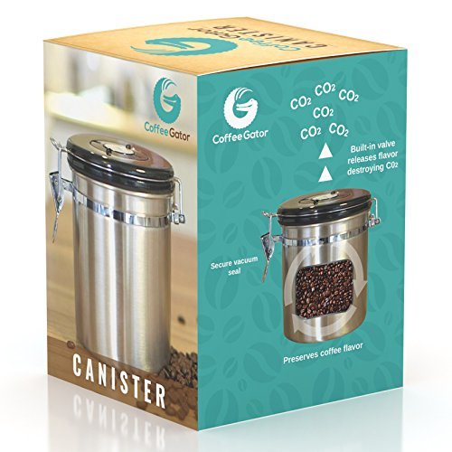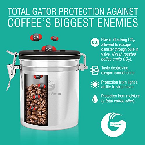 Stress no more. Introducing the Coffee Gator Coffee Canister to the rescue! ? Coffee container locks away the flavor of your coffee by forming a vacuum tight seal which still allows harmful CO2 to be vented out. ? Airtight coffee bean storage with built-in valve never needs to be replaced. Ensures your coffee is stored in optimum conditions meaning you can keep enjoying the best taste experience possible. ?Premium quality stainless steel coffee canisters