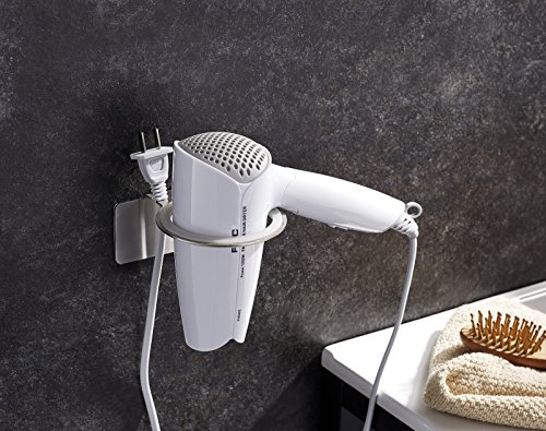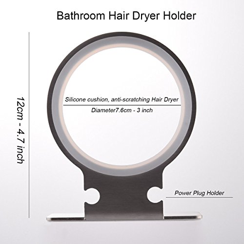 Hair Dryer Holder Wall Mount Self Adhesive Storage Organizer for Hair Blower with Plug Stand, 304 Stainless Steel Brushed Nickel & Water-Resistant
