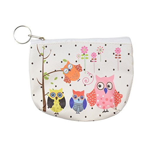 Cute Vinyl Owl Coin Purse Small Pouch with Zipper Closure