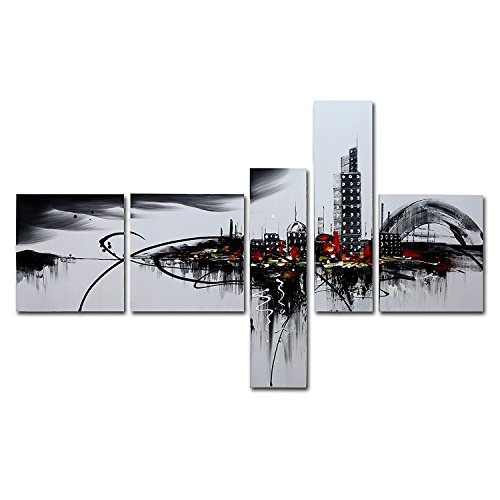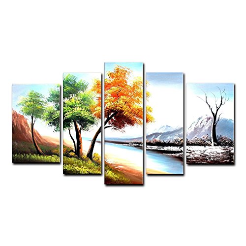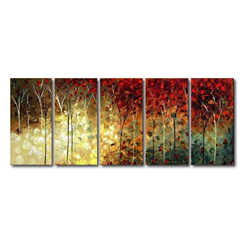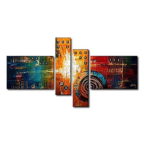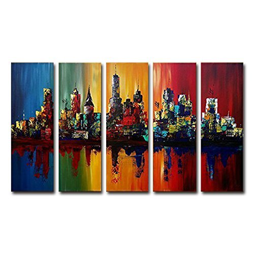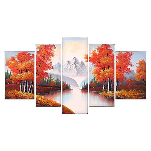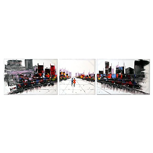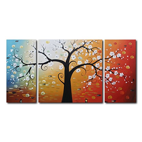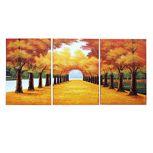 100% Hand-Painted painting on canvas are wrapped and stretched with wood frame, hooks are mounted on the back of wooden bar on each panel ready to hang.