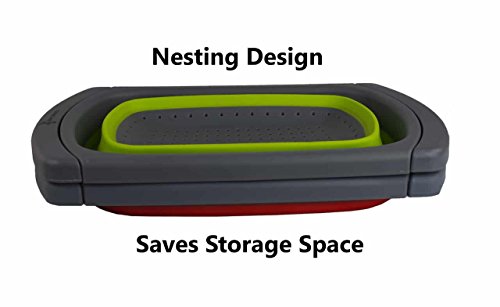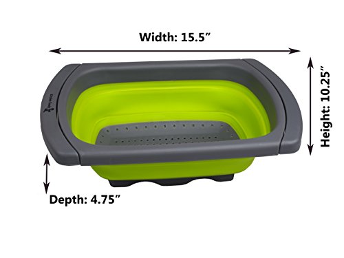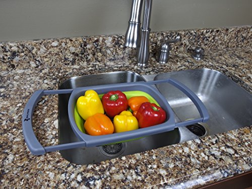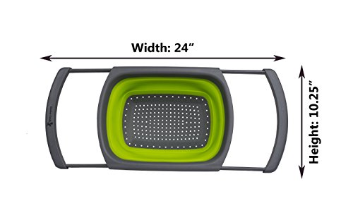 Compact and Practical DesignBy folding down to under 2 inches you can declutter your kitchen by storing this colander anywhere, even in a drawer. With the feet the colander can stand by itself with no help required. The extendable arms allow it to fit over almost every kitchen sink and the non-slip pads keep it safely in place.