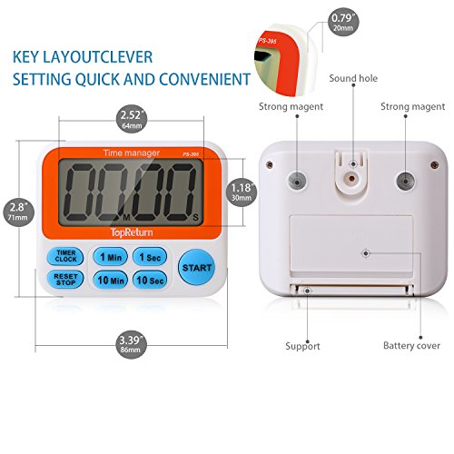 -. Title : TopReturn Kitchen Timer, Led Digital Large Display, Dual Count UP/Down Timer, Loud Alarm, Magnetic Backing, Stand