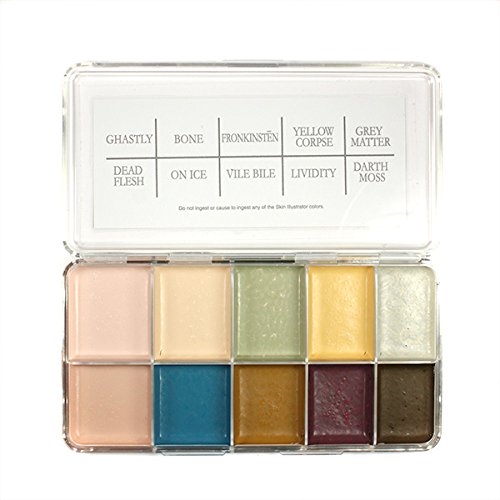 The Skin Illustrator On Set Necromania Palette is a mini version of the classic full size Skin Illustrator Necromania Palette. It has become an industry standard. This compact, pocket size palette contains the full ten colors of the larger Flesh Tone palette, but also an additional Rice Paper and a Vein Tone for that extra bit of color needed to make touch ups fast and easy. This palette is a must for any makeup FX artist. Use it alone, or in combination with other On Set Palettes. The colors can easily be applied with a brush or mascara wand (palette cells may be too small to apply color with a sponge). Use it alone, or mix the colors with any of the other Skin Illustrator tones to create your own unique blend of color. You must use Skin Illustrator Activator, Skin Illustrator Slow Activator, or 99% alcohol to activate the color pigment. Do Not use 70% alcohol, MEK, acetone, water or any other solvent.