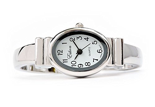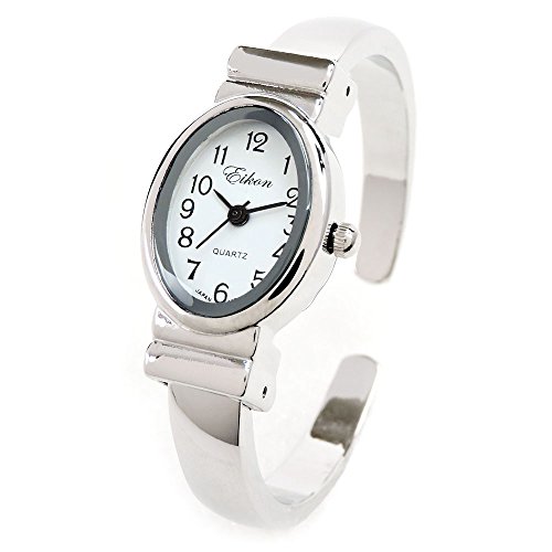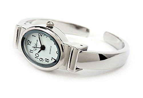 Silver Small Size Oval Face Metal Band Women's Bangle Cuff Watch