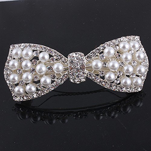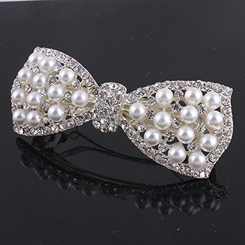 ZOONAI Women Rhinestone Pearl Tie Hair Clip Barrette Hairpin Headwear Accessories ZOONAI Women Rhinestone Pearl Tie Hair Clip is a good gift for your lover,family,friend and coworkers. You can wear it in any occasions and it makes you eye-catching, such as banquet, birthday party, anniversary, wedding and other parties. 0