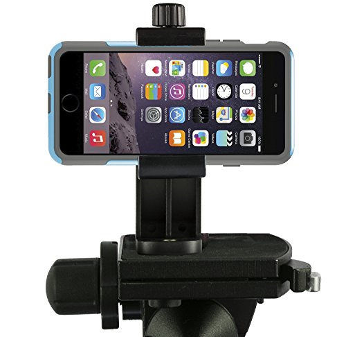 -. Feature : Compatible with all Android, Windows, Blackberry and Apple Smartphones; Mount seamlessly with any IPhone 6, 5, 5C, 5S, Samsung Galaxy S5, S4, Note 4, Note 3 and lots more / Made from premium quality plastic and soft protective rubber for extended durability and protection / Features tripod screws on both sides, a soft foam bumper, arms and protective rubber lips / Fits any standard tripod with a ¼ inches-20 threading Extremely easy to use and super convenient to setup / FITS ALL SIZES SMARTPHONES: This can be extended to use it for all sizes smartphone for smaller size and the bigger size smartphone
