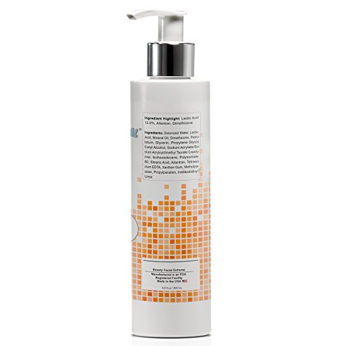-. Feature : Highly effective exfoliating lotion treatment specially formulated with a maximum strength 12% Lactic Acid and a unique blend of fruit acids and rich emollients to smooth even the roughest and driest skin. / Stimulates cellular regeneration to prevent and protect severe dry skin conditions on elbows, knees, and hands. Works great for dry, flaky skin on feet and softens stubborn calluses. / Gets rid of chicken skin (keratosis pilaris) on upper arms. Treats red bumps on upper thighs and buttocks associated with mild body acne. / Dry skin causes dead skin cells on the skins surface. Using a body scrub or loofah alone will not do it. Use Beauty Facial Extreme's Exfoliating Body Lotion to remove years of accumulation and build up. / Beauty Facial Extreme's products work, and they work extremely well. We stand behind our products 100%, with a guarantee of significantly transforming your skin to achieve healthy and more vibrant skin. Order Now, 30 Day Money Back Guarantee.