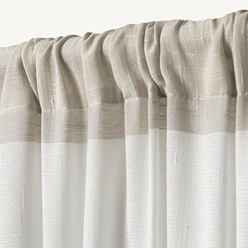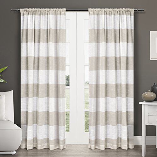 The Exclusive Home darma semi - sheer linen look rod pocket window curtain panels provide a classic look to any room in your home. The darma drapes offer a stylish horizontal stripe in natural earth tone colors to create a finished luxury look and feel to your favorite room at your home, office, apartment or any other window location. The tone on tone embellishment provides a light and airy feel, the perfect final touch. The darma drapery is constructed with a Sewn in rod pocket, fitting the curtain rod of your choice. Impress your friends, family and guests with these window curtain panels on any window.Feature