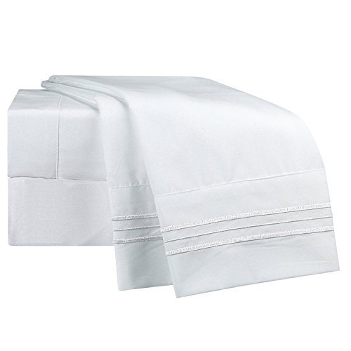 QUEEN Bed Sheet Bedding Set, 100% Soft Brushed Microfiber with Deep Pocket Fitted Sheet - WHITE ELEGANCE - 1800 Luxury Bedding Collection, Hypoallergenic & Wrinkle Free Bedroom Linen Set