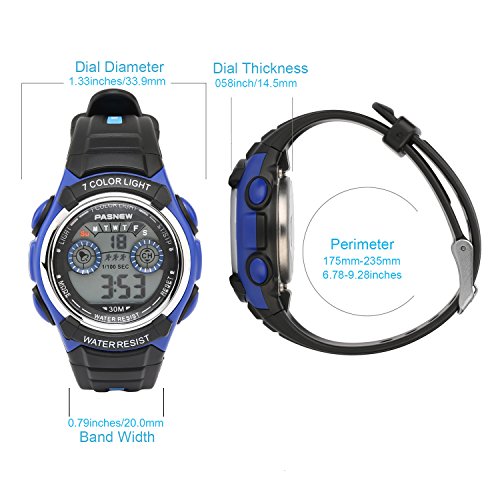 DURABLE & HIGH QUALITY MATERIALS: HOWOD's kids sport watch is manufactured with environmental friendly, high quality materials. It has a stainless steel back and buckle, plus a soft PU strap that ensures comfortable adjustment on a children's wrist with 10 regulation holes and perimeter from 7.2 to 9.3 inches. This is a digital movement watch, 30m water resistant and has a long lasting battery.