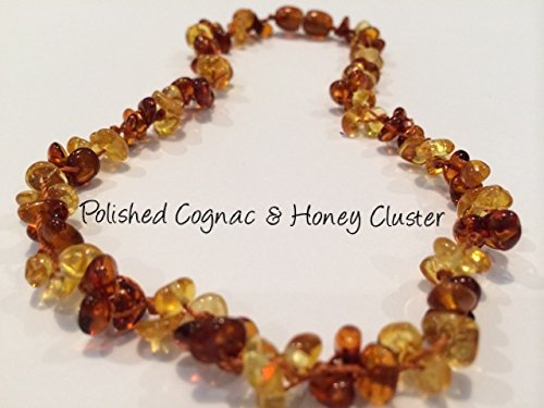 Baltic Amber 12.5 Inches Polished Cognac Honey Cluster Flower Teething Necklace for Babies - Baby, Infant, and Toddlers. Cognac Yellow Brown Lemon...
