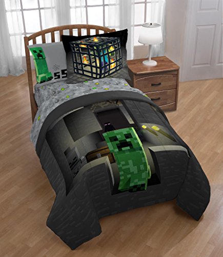 Transform any child's bedroom with a bold and colorful Mojang Minecraft Spawn Reversible twin/full Comforter. Sure to keep you warm, this reversible comforter is stuffed with polyester fill for loft and cozy comfort. Quilt stitching holds fill in place and adds decorative flair. Durable polyester fill is soft, comfy and warm and holds its shape after multiple washings. Reversible design allows you to instantly change the look by simply flipping the comforter over. Twin/full comforter measures 72" x 86". Additional bedding coordinates and accessories sold separately. Easy care, machine washable. Imported.Feature