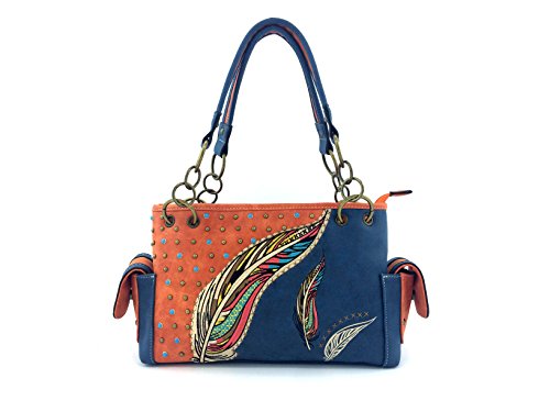 -. Title : Y.C. multi-color Feather Rhinestone Studded Side Pockets Inside Divider Western Purse Shoulder Bag