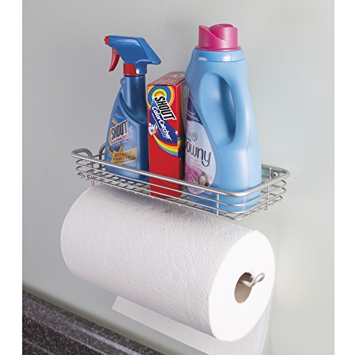 - Feature : Paper towel holder Mounts to a wall / Simple, clean design great for kitchen, laundry room, or garage / Shelf stores necessities like spices, cleaning supplies, candles, soaps and more / Made of steel with matte satin finish / 12.25x 5.25x 5.25