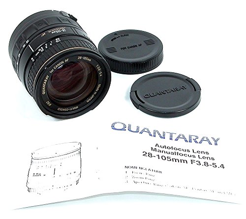 The new standard in zooms, the Quantaray 28-105mm zoom covers a wide range of focal lengths, and thanks to its double-cam internal focus/zoom design, it is remarkably compact. It also offers a minimum focal distance of 19.7 in. throughout its zoom range for crisp, colorful close-ups that are just as sharp as the shots at regular distances. The internal focus of the 28-105's design means that the lens length stays the same as you focus, preserving image stability and facilitating quick shots. The internal focus design also means that hoods and filters, especially polarizing filters, are easier to work with because the front of the lens does not rotate.Feature