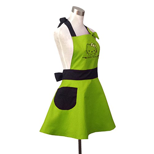 Lovely Hello Kitty Green Retro Kitchen Aprons for Woman Girl Cotton Cooking Salon Pinafore Vintage Apron Dress