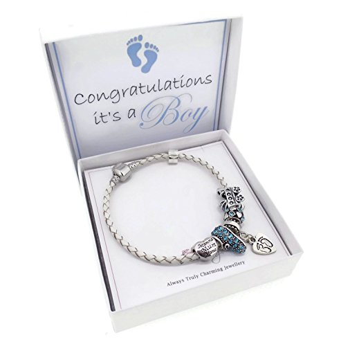 -. Title : It's A Boy New Mum Leather Charm Bracelet Style Gift Boxed