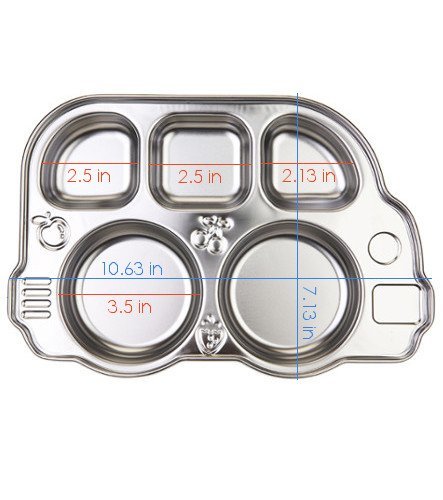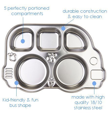 -. Feature : 100% SAFE FOR YOUR CHILD - The ORIGINAL Innobaby Bus Platter is made of the highest quality, food grade 304 stainless steel (18/10 stainless) in South Korea. This product is nontoxic, BPA free, Phthalate free, PVC free and lead free. / BUILD HEALTHY EATING HABITS EVEN FOR THE PICKIEST EATERS - Our kid friendly design & colorful lids make meal & snack times fun. This separated plate has 5 compartments making food introduction easier and allowing picky eaters to keep food from touching. / PERFECT FOR DAYCARE AND SCHOOL LUNCHES - Pack a lunch and rest assured the food will stay put in this separated plate. Our stay tight lid will keep food in its place, even on the go. / DURABLE AND GOOD FOR THE ENVIRONMENT - Our stainless steel kids cups, bowls, plates, forks and spoons will not stain, harbor orders, rust or crack. Rid yourself and the environment of plastic and paper plates for good - opt for stainless steel. / MAKE IT A SET- Innobaby has a complete line of stainless steel toddler feeding products including stainless steel cups, stainless steel bowls and stainless steel silverware. Buy the entire line on Amazon.com.