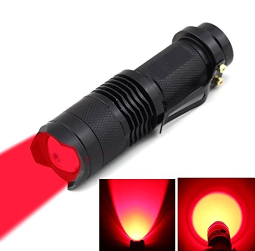 BESTSUN Mini Cree Red LED Coyote Hog Fox Predator Varmint Hunting Red Light Water Resistant Ultra Bright Tactical Flashlight Single 1 Mode Zoomable High Lumens AA or 14500 Battery Powered Lamp Torch