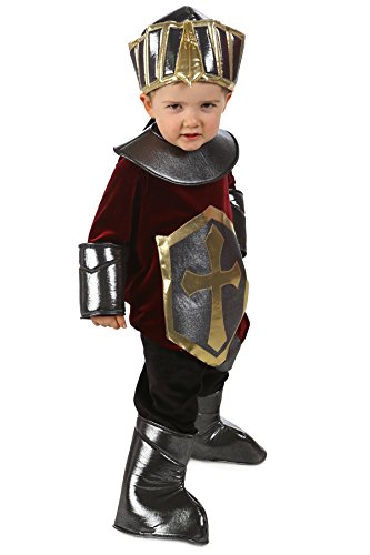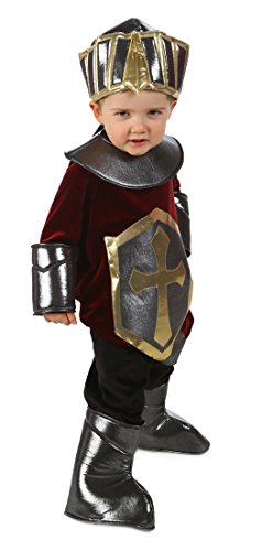 Be just like Daddy in this Crusader costume. Oversized attached boot covers and gauntlets will give the appearance your little man is wearing his Daddy's knight and shining armor costume.