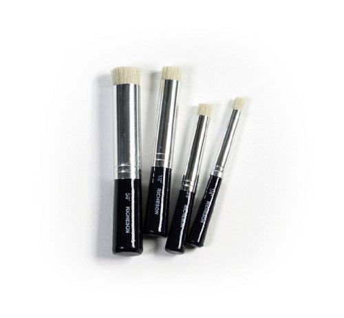SHIVA-Paintstik Brush Set (Richeson Tools). Four (4) stencil brushes with bristle ends. Each has a navy blue handle. Approximate sizes of ends: 5/8 1/2 3/8 and 1/4.