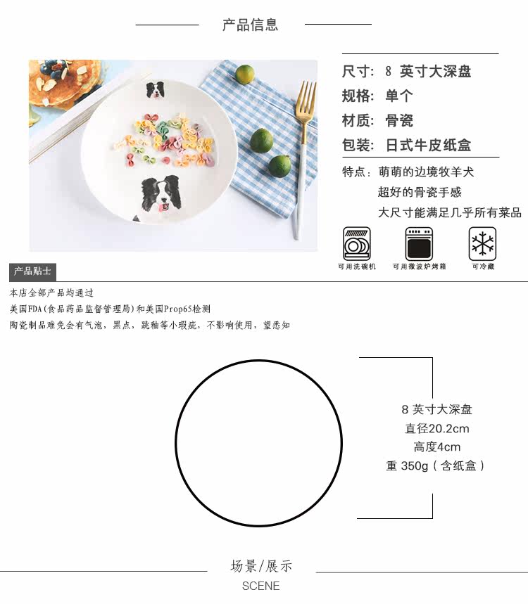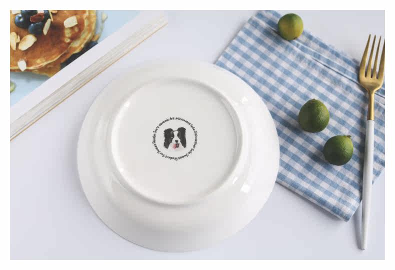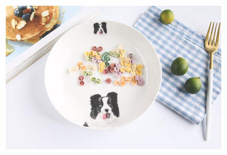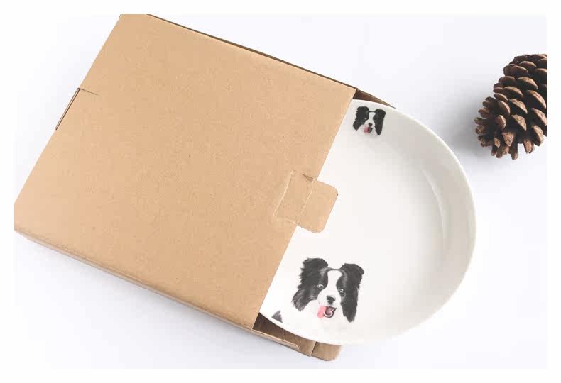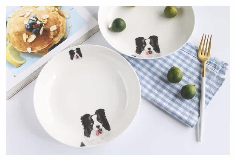 边境牧羊犬创意陶瓷可爱动物盘子果盘甜点盘家用盛菜盘焗饭盘微波