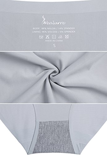 -. Binding : Apparel -. Brand : Wealurre -. Department : womens -. Feature : ✅HIGH-QUALITY FABRICS: These bikini panties are made from a tough yet elastic Nylon and spandex blend / ✅FASHION DESIGN: Laser cut ,low rise bikini for a smooth look under clothes / ✅SEAMLESS FEATURE : Soft bikini bottom seamless style with no show panty lines / ✅FIT - All of our panties have a reasonable stretch; Small: 36-37" ; Medium: 38-39"; Large : 40-42" / ✅For more women panties, please search WQB2925 on amazon -. IsAdultProduct : 0 -. Model : WQB826 -. ProductGroup : Apparel -. ProductTypeName : UNDERWEAR -. Title : Wealurre Seamless Underwear Invisible Bikini No Show Nylon Spandex Women Panties
